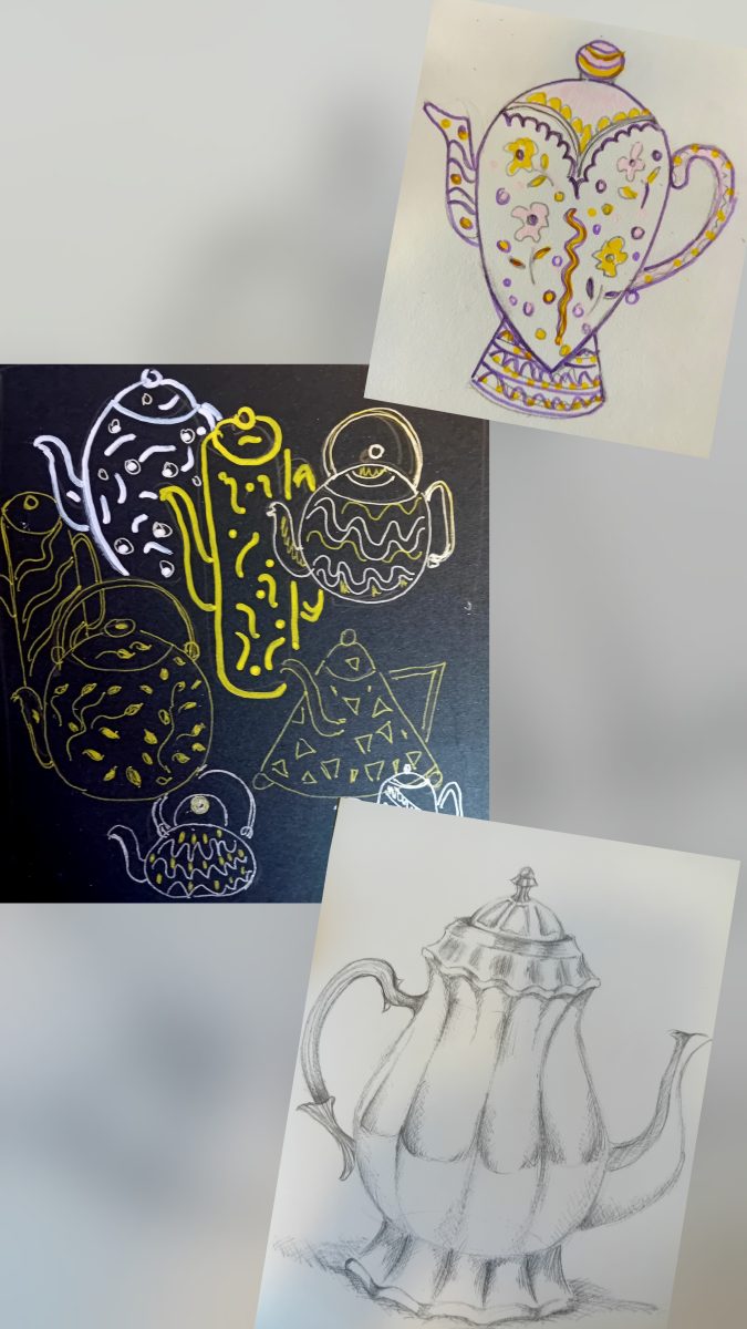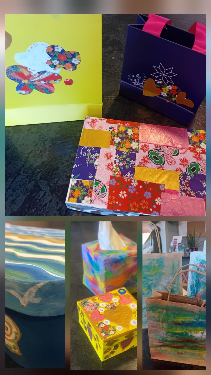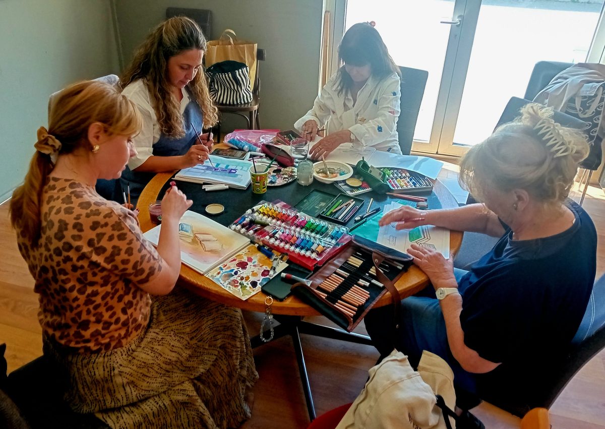 The Arts and Creations Workshops take place each week and we meet at the International Tennis Club in Pregny on Tuesday at 14h. We explore all types of subjects and I give a theme each week. This theme can be anything from plant life, trees, seascapes or a variety of still life subjects. We use many types of mediums such as paints, pastels, crayons, felt tips, pencils etc., and we also use many types of materials to apply the paint such as sponges, knives, brushes and even forks to give different textures.